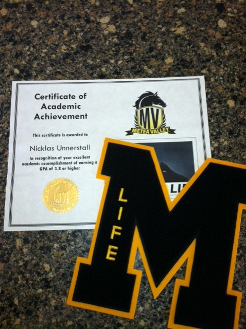 Actually, since Nick has not met the academic requirements needed for a diploma, he will receive a “certificate of completion” upon graduation. He did letter in high school and a look at that GPA.🙂