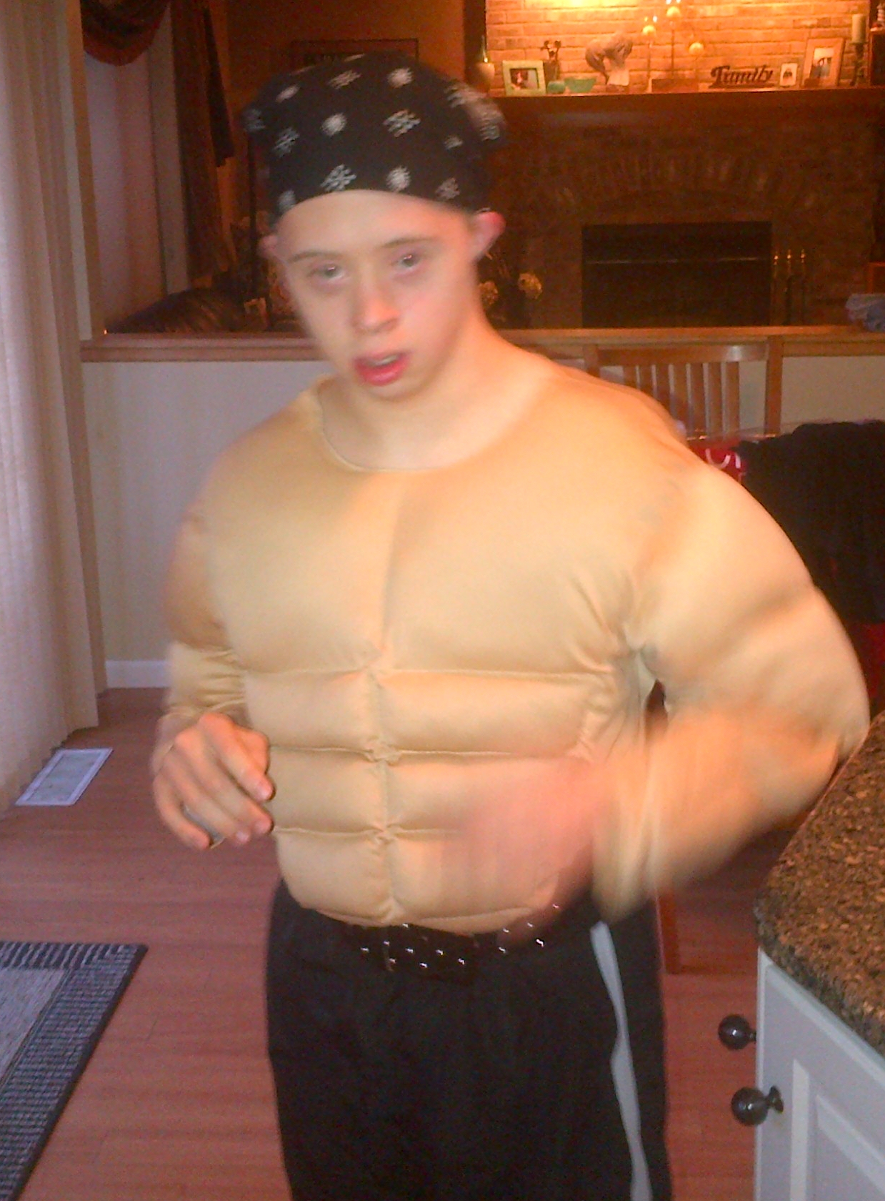 Big guy overcame low muscle tone! More Halloween costume pictures over the years are located in the October 2012 archives. 🙂