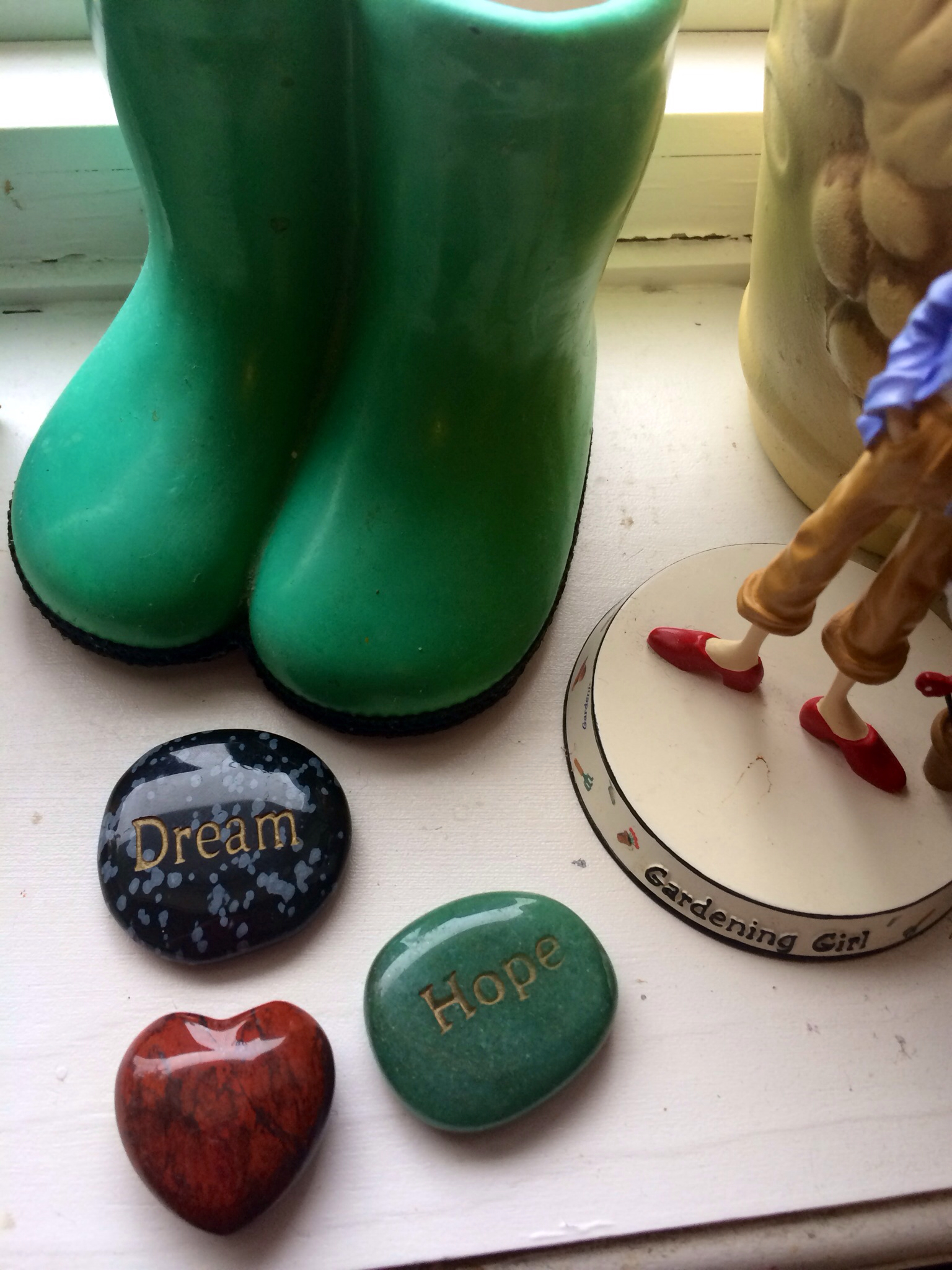 This morning he put on his Dad’s gloves……