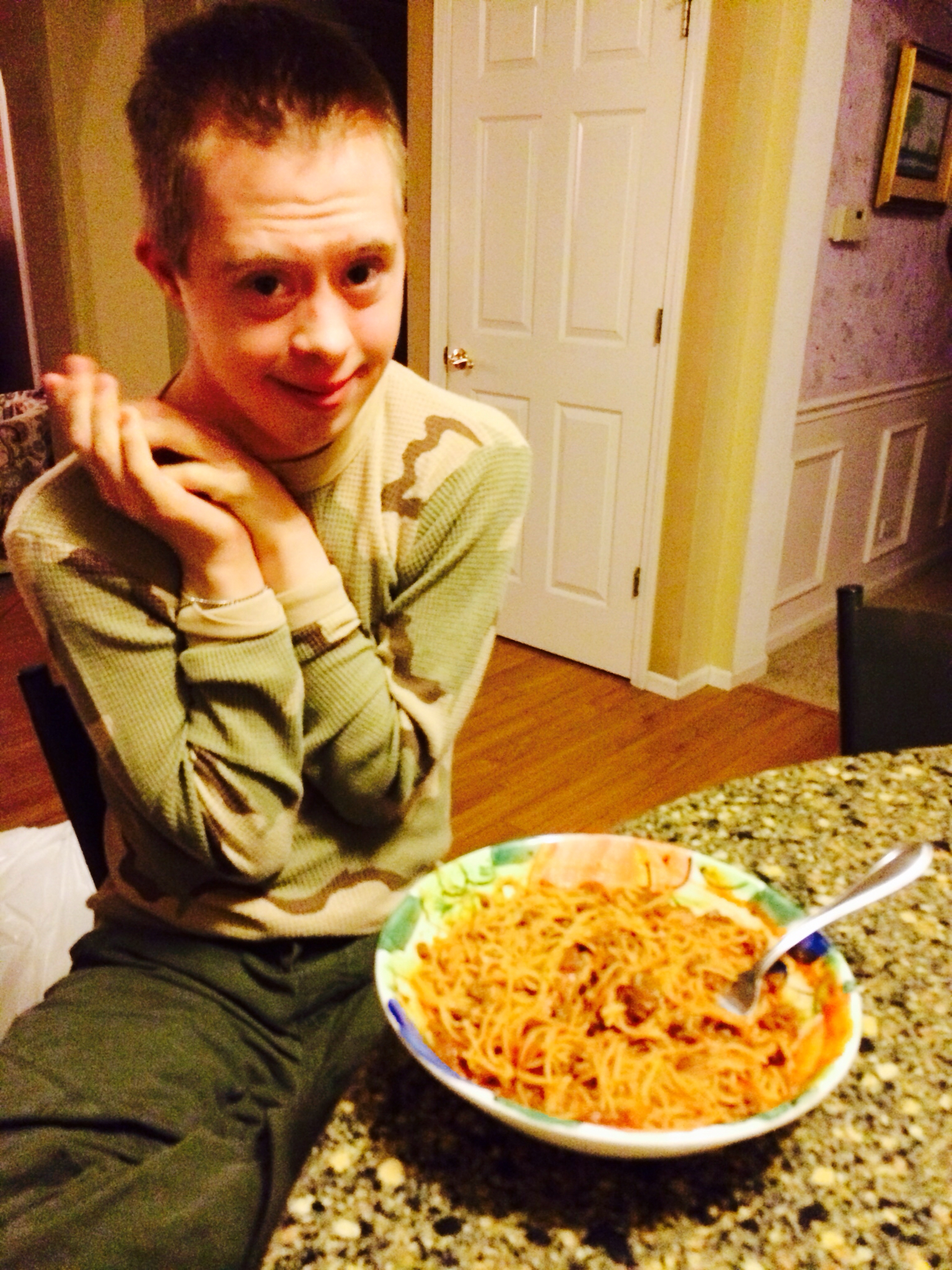 Nick enjoyed his favorite meal that evening, a big bowl of pasta!
