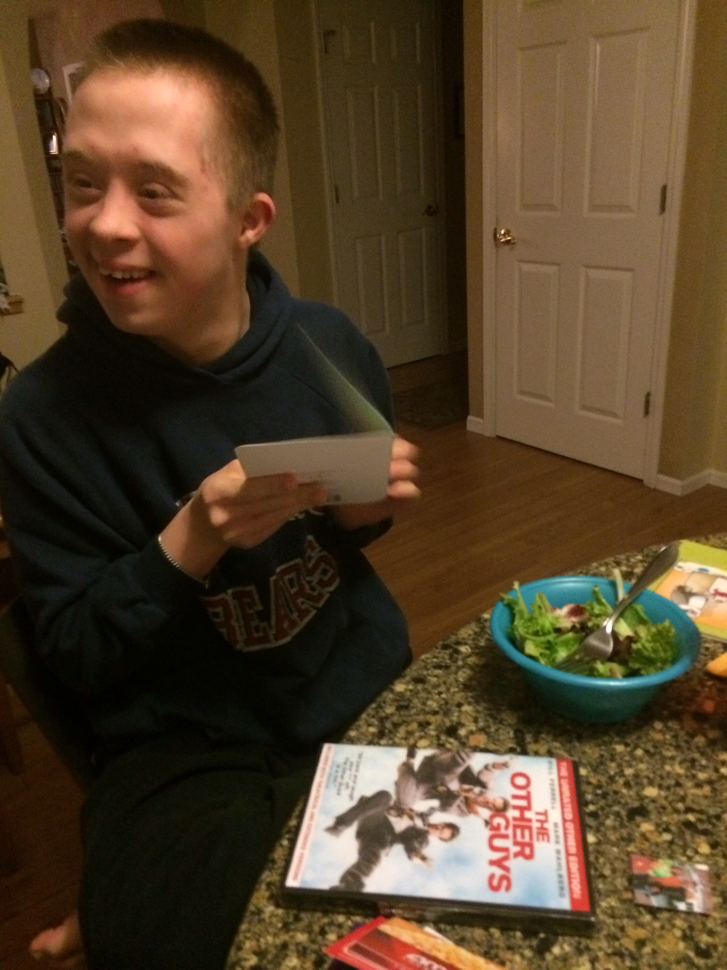 I have a lot of thoughts floating around in my noggin about the last 20 years, and raising a child with Down syndrome and autism.  It’s a mixed bag of emotions~joy, triumph, gratitude, and amusement tossed with fear, sadness, frustration and anger.  I’m going reflect for a bit and share at a later date.  For now, I will try to get use to the idea that Nick is not a child anymore.  Not an easy task given his childish ways.  That’s what is in my noggin this week.