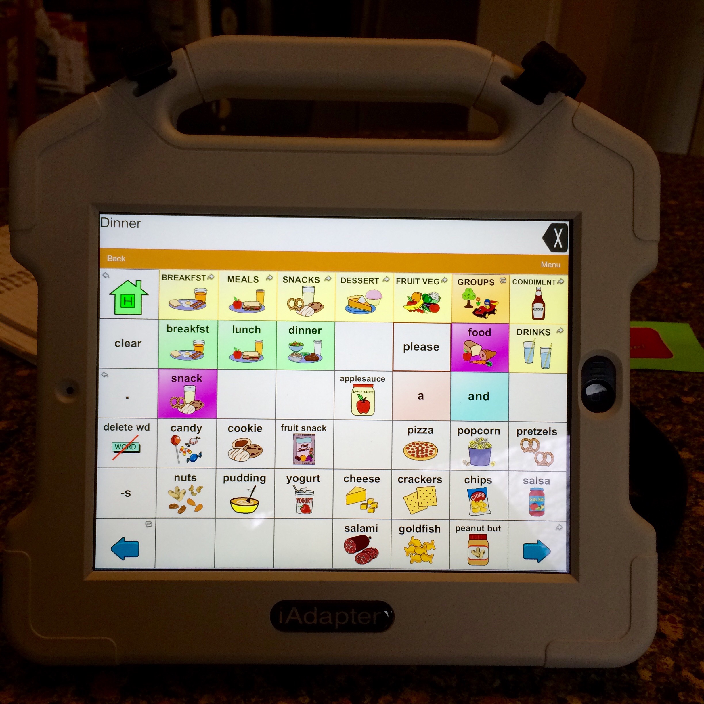 Nick is using his talker to make requests for iPad, Sprite, food items. When he burps he pushes the buttons, “excuse me” or “that’s gross”. The other night I was busy doing laundry and getting dinner ready. He was getting impatient and growing tired. He proceeded to push “stop”- “I’m tired”- “I want to eat”. When he finished dinner, he pushed the buttons “finished” and “bedtime”. I’ve also noticed that he is using more verbal language since getting talker 2 months ago!